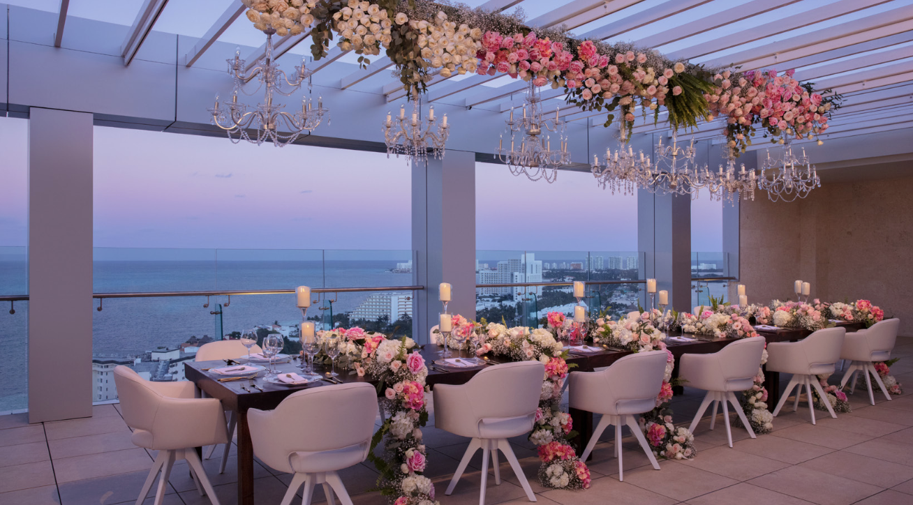 If you're planning a trendsetting all adults destination wedding, look no further than Breathless Cancun Resort & Spa. This contemporary all-inclusive resort in the heart of Cancun's hotel zone features breathtaking rooftop views of the Caribbean Sea and everything you need for an iconic wedding day that will thrill everyone on your guest list. Your wedding guests will find no shortage of activities during their stay. An innovative entertainment lineup creates the perfect mix of excitement and relaxation. No matter your wedding vibe, your on-site wedding coordinator will see to every detail so you can enjoy your time in paradise. Wedding packages are thoughtfully designed to help you curate a one-of-a-kind romantic experience, with options ranging from complimentary to extravagant (and everything in between). Luxuriate in an inspiring energy on your big day where city chic meets edgy opulence.
