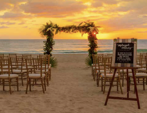 Whether you choose to walk down the aisle or along the beach, this resort offers complimentary as well as custom wedding packages of all sizes for your destination event.